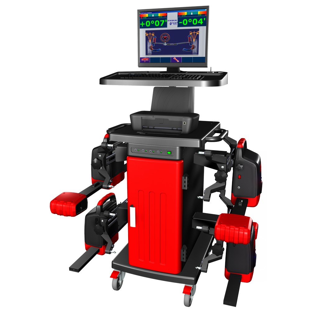 Укомплектован 17’’ монитором, цветным принтером, пультом дистанционного управления, двумя передними поворотными платформами и имеет базу данных более 20000 автомобилей. Архив клиентов позволяет хранить в памяти компьютера информацию обо всех отрегулированных автомобилях.