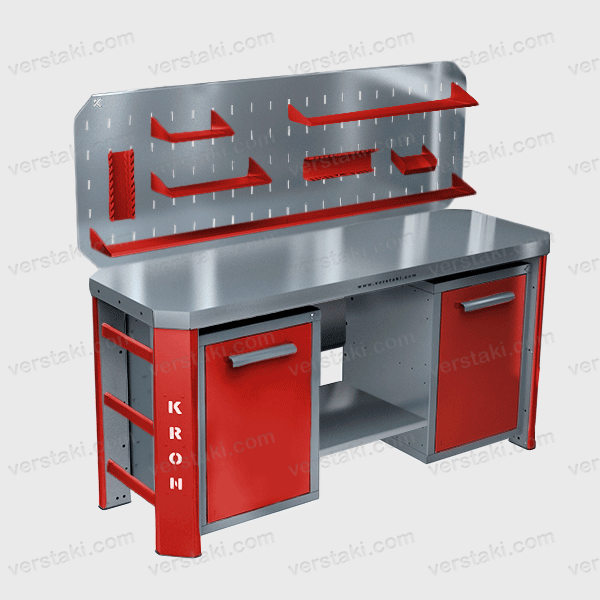 Повышенная прочность. Благодаря своей уникальной конструкции и толщине составных деталей, максимальная распределенная нагрузка на верстак может составлять до 1500 кг, а на ящики и полки 200 кг.