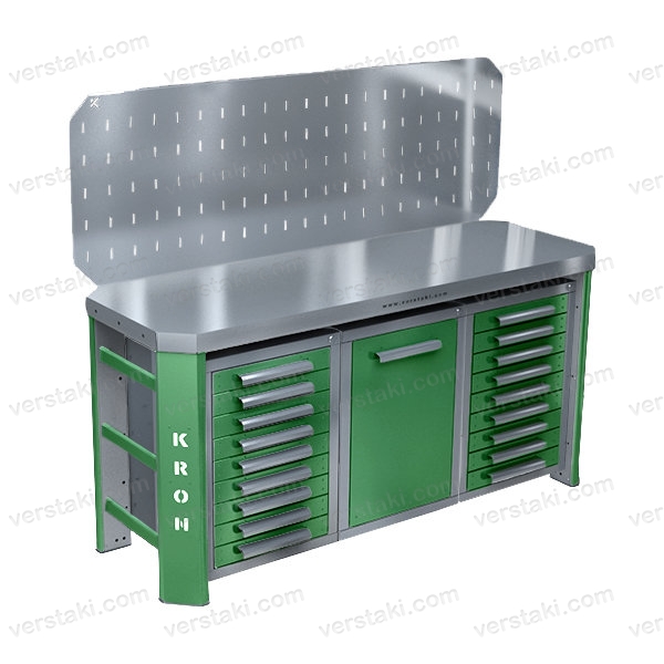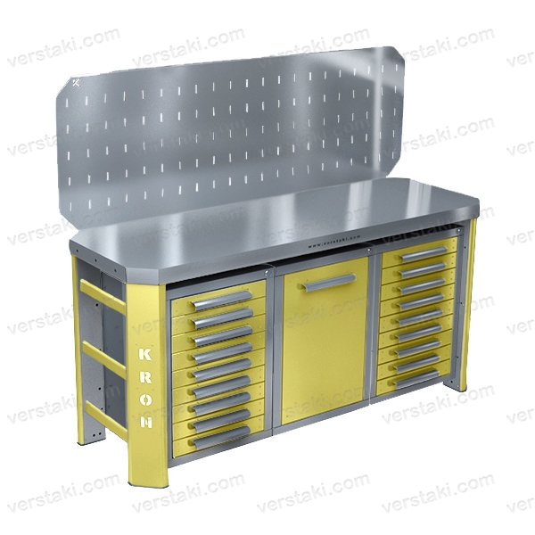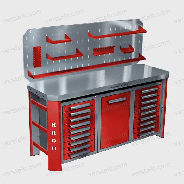Повышенная прочность. Благодаря своей уникальной конструкции и толщине составных деталей, максимальная распределенная нагрузка на верстак может составлять до 1500 кг, а на ящики и полки 200 кг.