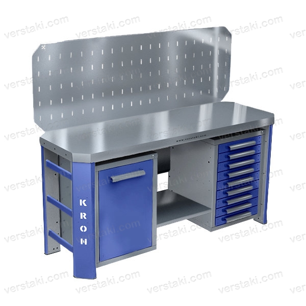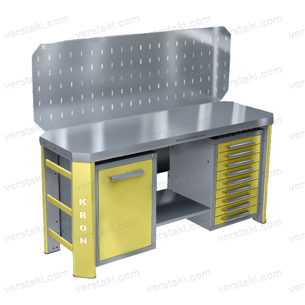 Повышенная прочность. Благодаря своей уникальной конструкции и толщине составных деталей, максимальная распределенная нагрузка на верстак может составлять до 1500 кг, а на ящики и полки 200 кг.