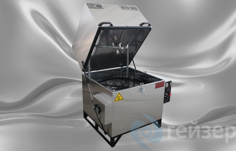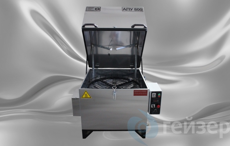 АПУ 800 - профессиональная установка струйной очистки с вращающейся корзиной и легко открывающейся вверх крышкой.