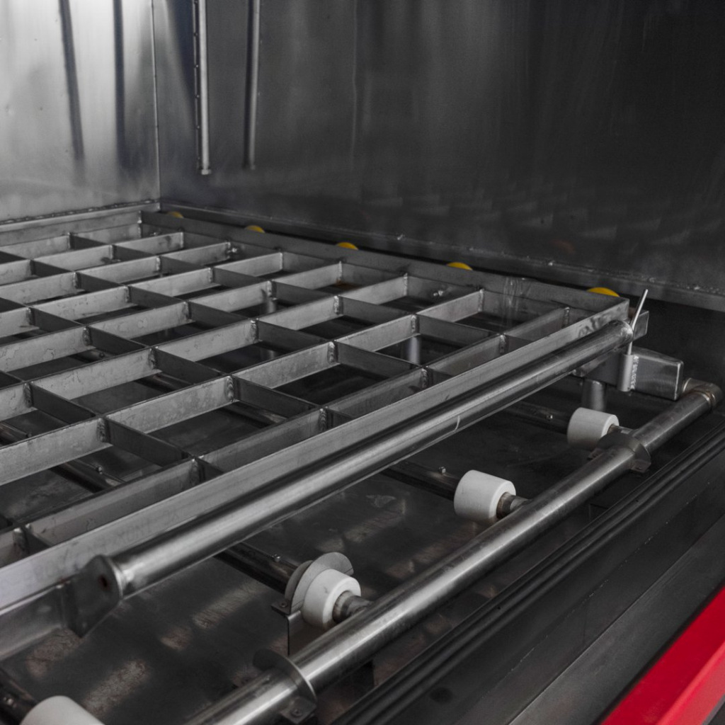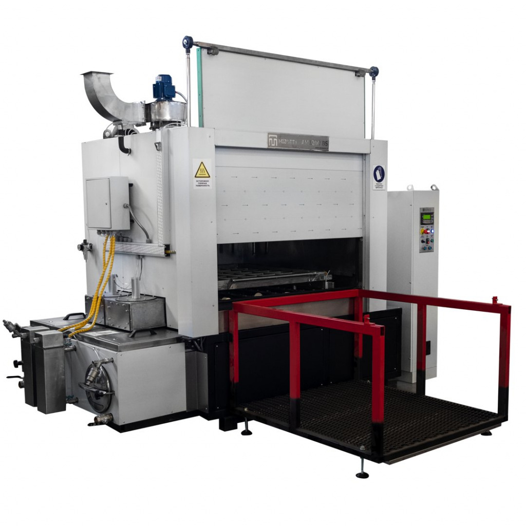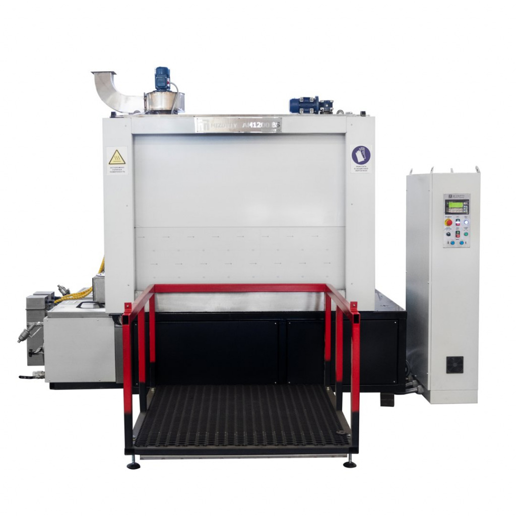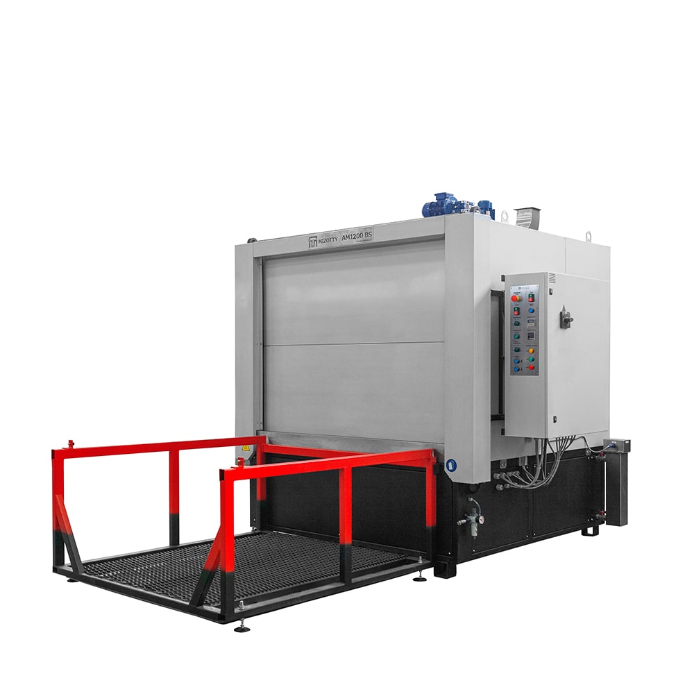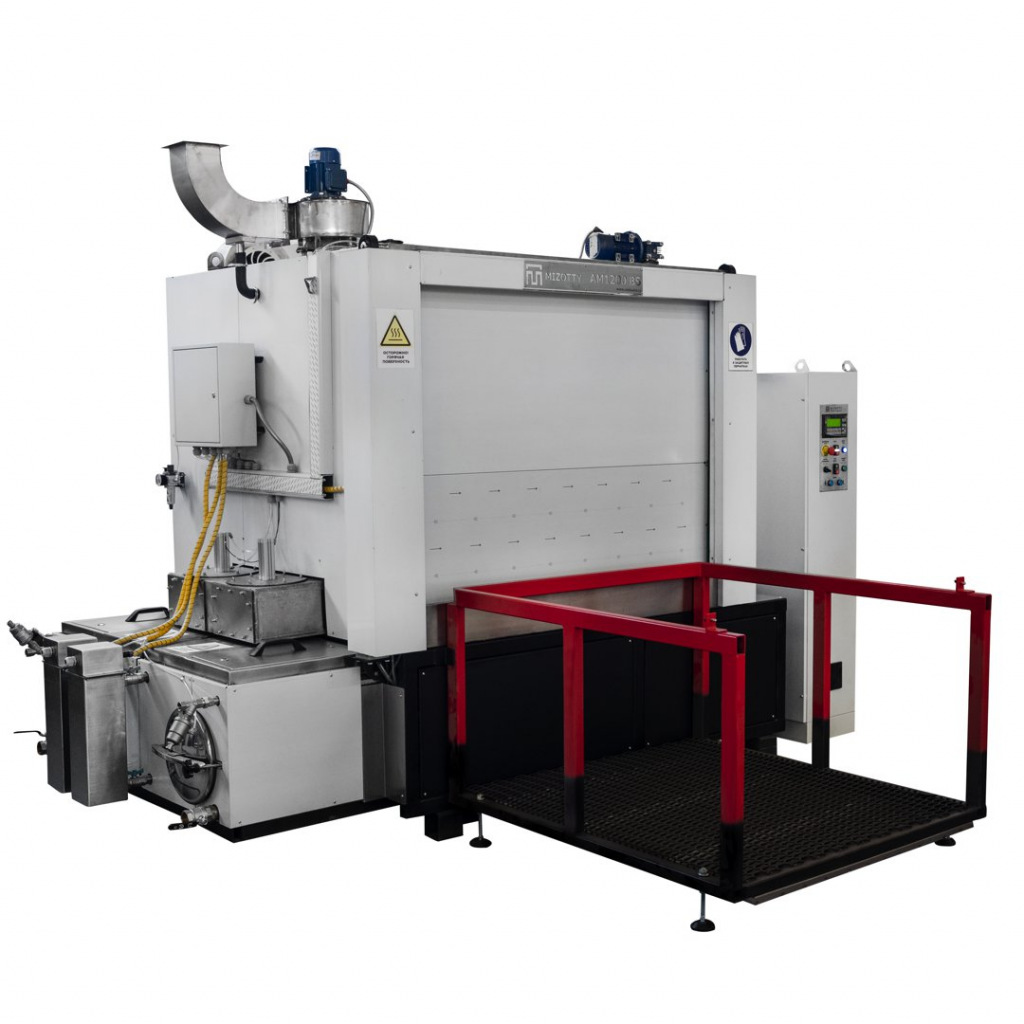 Промышленная моечная машина с закатной платформой АМ1200 BS используется для очистки крупногабаритных узлов с большим весом. Установка оснащена движущимися вокруг неподвижной детали коллекторами, позволяющими очищать самые большие и тяжелые агрегаты за счет увеличенной грузоподъемности. Омываемое пространство в серии BS представляет собой куб, стороны которого зависят от конкретной модели. Вращение моечных рамп с форсунками выполнено при помощи прямого и цепных приводов, что обеспечивает высокую надежность движущихся узлов. Время цикла очистки и требуемая температура растворов задается на панели управления, при наличии монохромной или сенсорной панели, оператор имеет возможность сохранять до 100 предустановленных программ под различные типы деталей. В базовой комплектации моечная машина выполняет только функцию мойки, то есть является одностадийной. По техническому заданию заказчика линейка моделей может быть оснащена дополнительными режимами обработки: ополаскивание, пассивация, фосфатирование, сушка горячим воздухом.