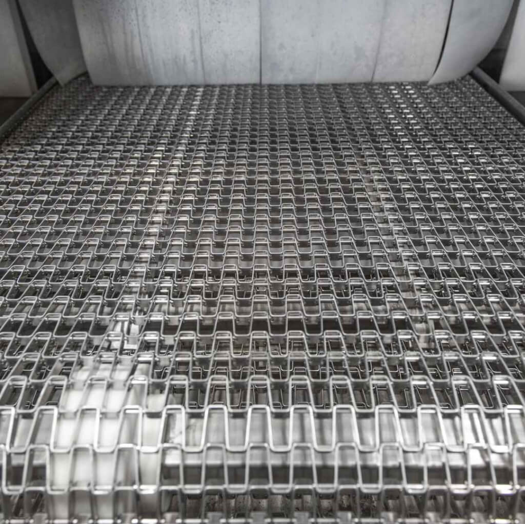 - Транспортер из нержавеющей стали AISI 304 с натяжной станцией, ячейка 15х20