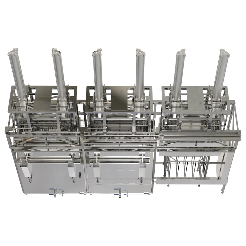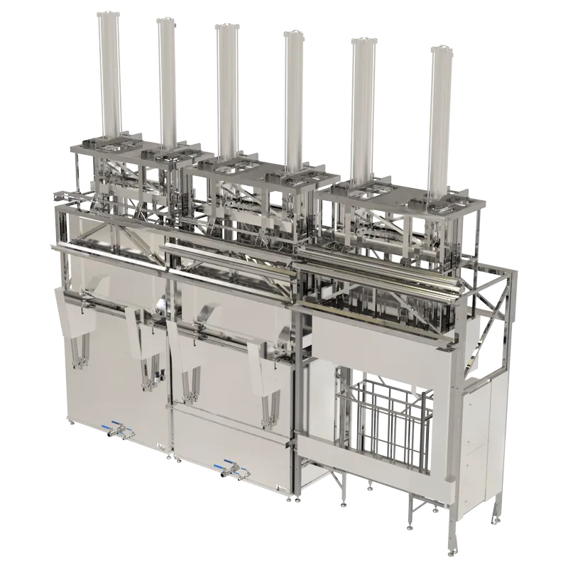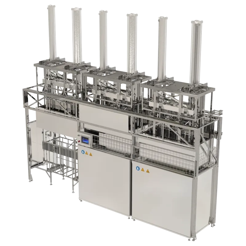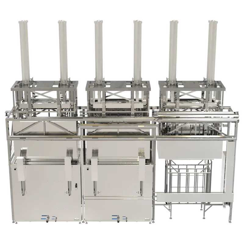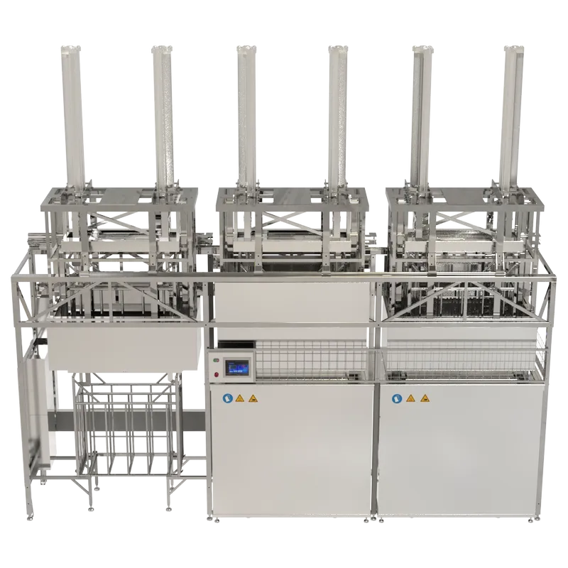 Представляет собой интегрированное устройство линии очистки с системой перемещения загрузочных корзин, столами загрузки и выгрузки. Пошаговое перемещение подразумевает перемещение всех корзин на один шаг за время одного цикла. Система обеспечивает управление процессами линии согласно программным настройкам. Система программирования обеспечивает операторский контроль за технологическим процессом очистки в реальном времени.