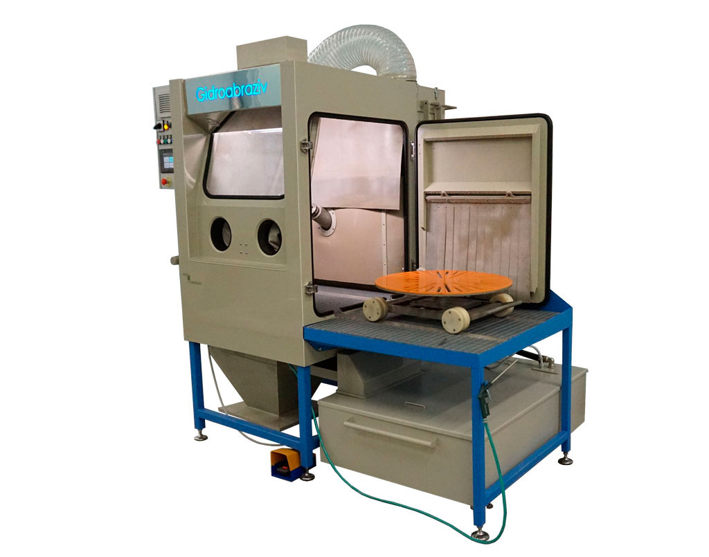 Установка гидроабразивной очистки с галтовочным барабаном, тележкой с вращающимся столом, сменными абразивными конусами КС-100ТГ/СК