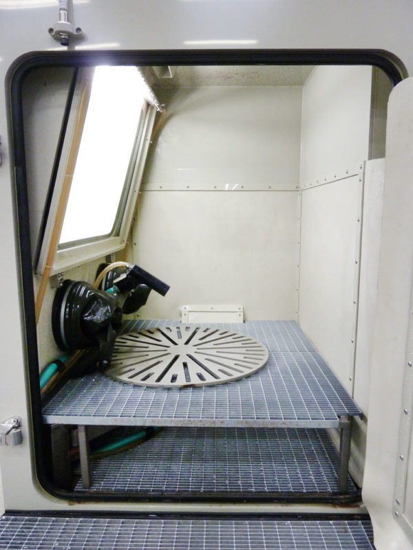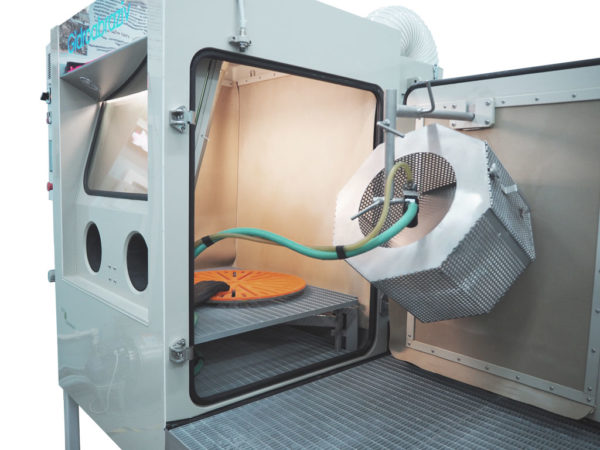 КС-100ВСГД предназначена для ручной обработки в перчаточных портах на автоматизированном вращающемся столике на выездной тележке и массовой обработки мелких изделий в автоматизированном галтовочном барабане расположенном на двери.