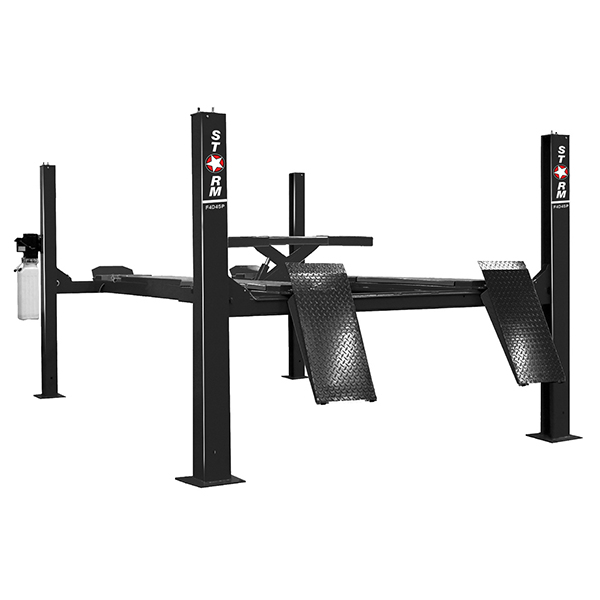 СТОРМ F4D4SP - четырехстоечный электрогидравлический подъемник грузоподъемностью до 4 тонн, предназначен для подъема легковых автомобилей, внедорожников и легкого коммерческого транспорта с последующей фиксацией на рабочей высоте для проведения слесарных работ и сход-развальных работ с технологией 3D, так и без неё, а также с прокаткой. Автомобильный подъемник F4D4SP оснащен траверсой c управлением с кнопки на самой траверсе.