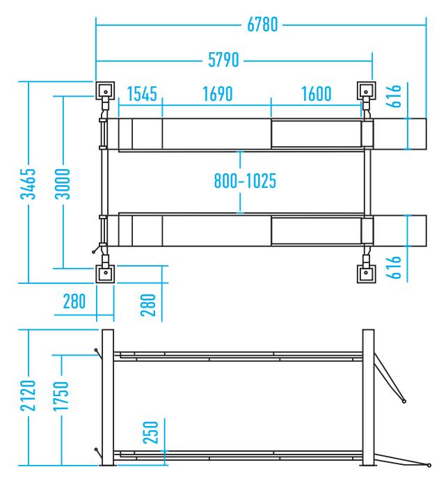 В комплекте траверса Заездные трапы, платформы и система стопоров, с помощью которой осуществляется фиксация автомобиля на высоте. Оборудован сдвижными пластинами под задние колеса и местами для поворотных кругов с заглушками. Надежная система замков безопасности