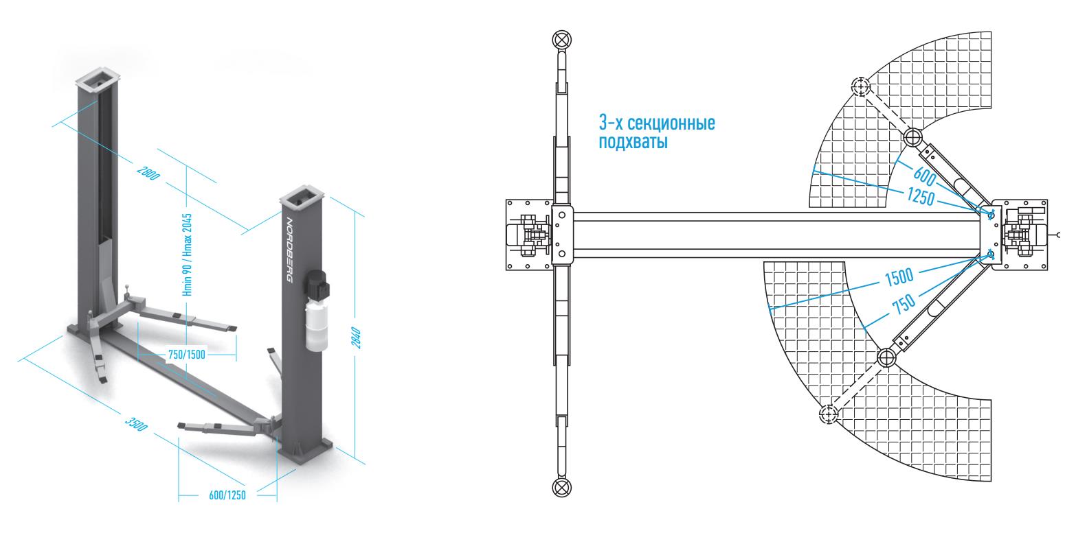 Подъемник двухстоечный Nordberg с верх. синхрон. N4123H-4,5T 220В/380B