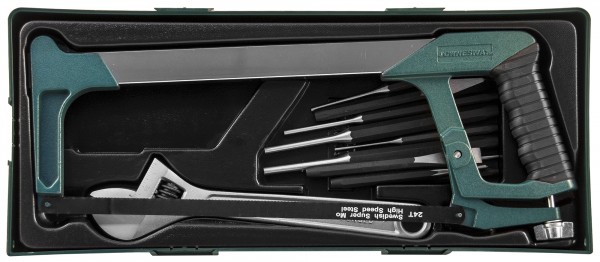 Набор инструмента ножовка, разводной ключ, зубила и выколотки